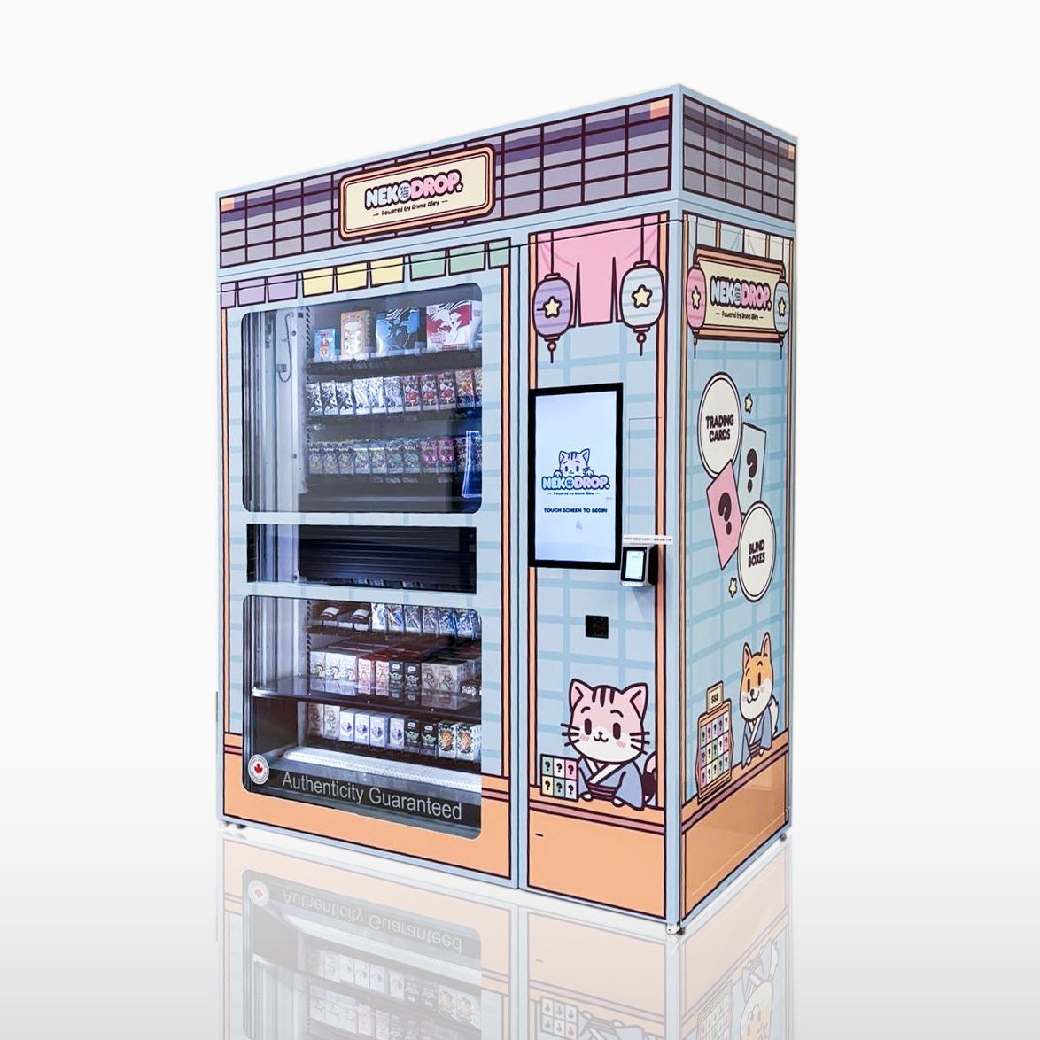 Step up, tap, and wait for the reveal. NekoDrop™ brings the thrill of blind-box collecting into everyday spaces, offering a rotating mix of premium figures, cards, and collectibles. It’s playful, engaging, and built to make every drop feel like a win.